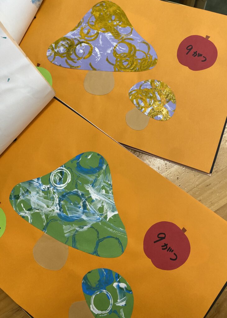 「みんな同じ」ではなく「その子らしさ」が、きのこの模様ひとつ、色の選び方ひとつに表れています。